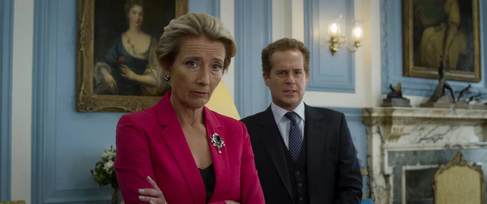 Actors: Rowan Atkinson as Johnny English, Emma Thompson as Prime Minister, Olga Kurylenko as Ophelia Bhulatova, Ben Miller as Bough, Adam Greaves-Neal as Tomlinson, Charles Dance as Agent Seven, Michael Gambon as Agent Five, Kevin Eldon as MI7 Night Duty Agent, Adam James as Pegasus, Noah Spiers as Baggaley, Kendra Mei as Ibadulla, Alfie Kennedy as Straker, Edward Fox as Agent Nine, Jasmine Brightmore as Dowling, Rua Robertson as Ridley, Nifemi Bankole as Obasanjo, Gus Brown as Headmaster, Pippa Bennett-Warner as Lesley, Matthew Beard as P, Didier Martiny as Hotel Magnifique Valet, Melody Lebeau as Hotel Magnifique Waitress, Roger Barclay as Sebastian Lynch, Irena Tyshyna as Sebastian Lynch's Companion, Dan March as Senior Waiter, Miranda Hennessy as Tara, Jack Fox as Geoffrey, Jake Lacy as Jason Volta, Jules de Jongh as Xander (voice), Amit Shah as Samir, Tibu Fortes as Kitchen Staff #1, Adrian MacKinder as Chef in Yacht, Jean-Toussaint Torre as Kitchen Staff #2, Tristam Summers as Yacht Crewman #1, Darrell Foster as Yacht Crewman #2, Maria Pavelin as French Waitress, James Pariera as Café Diner #1, Olivia Le Andersen as Café Diner #2, Emily Outred as Café Diner #3, Christophe Gasser as French Cyclist #1, Julien Romeo as French Cyclist #2, Ako Mitchell as Alvin, David Mumeni as Fabien, Maria McColgan as Woman in Bookshop Lift, Hiba Chader as Newman, James Eeles as Café Employee, Laura June Hudson as Old Lady, Jonny Sweet as Tour Guide, Daniella Bowen as Meeting Room Person #1, Paris Iris Campbell as Meeting Room Person #2, Alison Ward as Meeting Room Person #3, Alan Emrys as Tony, Neil Edmond as Driving Instructor, Pauline McLynn as Mrs. Trattner, Vicki Pepperdine as Lydia, Cavan Clerkin as Castle Guard, Eddie O'Connell as G14 Nation Diplomat #1, Junichi Kajioka as G14 Nation Diplomat #2, Chris Hayward as G4S Security Guard, Peter Singh as Officer Kohli, George Turner as Hattersley